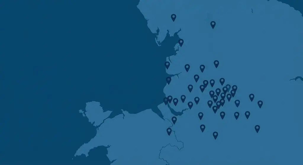 Altrincham, Ashton Under Lyne, Blackburn, Blackpool, Bolton, Bowden, Burnley, Bury, Buxton, Cheadle, Cheshire, Chorley, Denton, Eccles, Elsmere Port, Glossop, Hale. Hazel Grove, Hyde, Knutsford, Lake District, Lancashire, Lancaster, Liverpool, Macclesfield, Manchester, Merseyside, New Mills, Peak District, Preston, Rochdale, Salford, St Helens, Stockport, Stretford, Southport, The Wirral, Trafford Park, Wales, Warrington, Whaley Bridge, Widnes, Wigan, Wilmslow, Wrexham, Wythenshawe and the Yorkshire Dales.